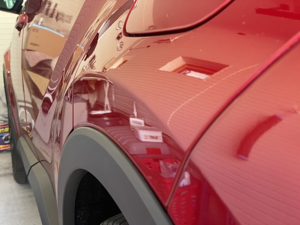 今回荷室サイドのトリムを取り外したり、テールランプを取り外して工具アクセスをいたしましたが、なかなか支点が取りにくく、かといってプレスラインは中途半端な力ではしっかり凹みの芯を上げることができないのでやや苦労いたしました。