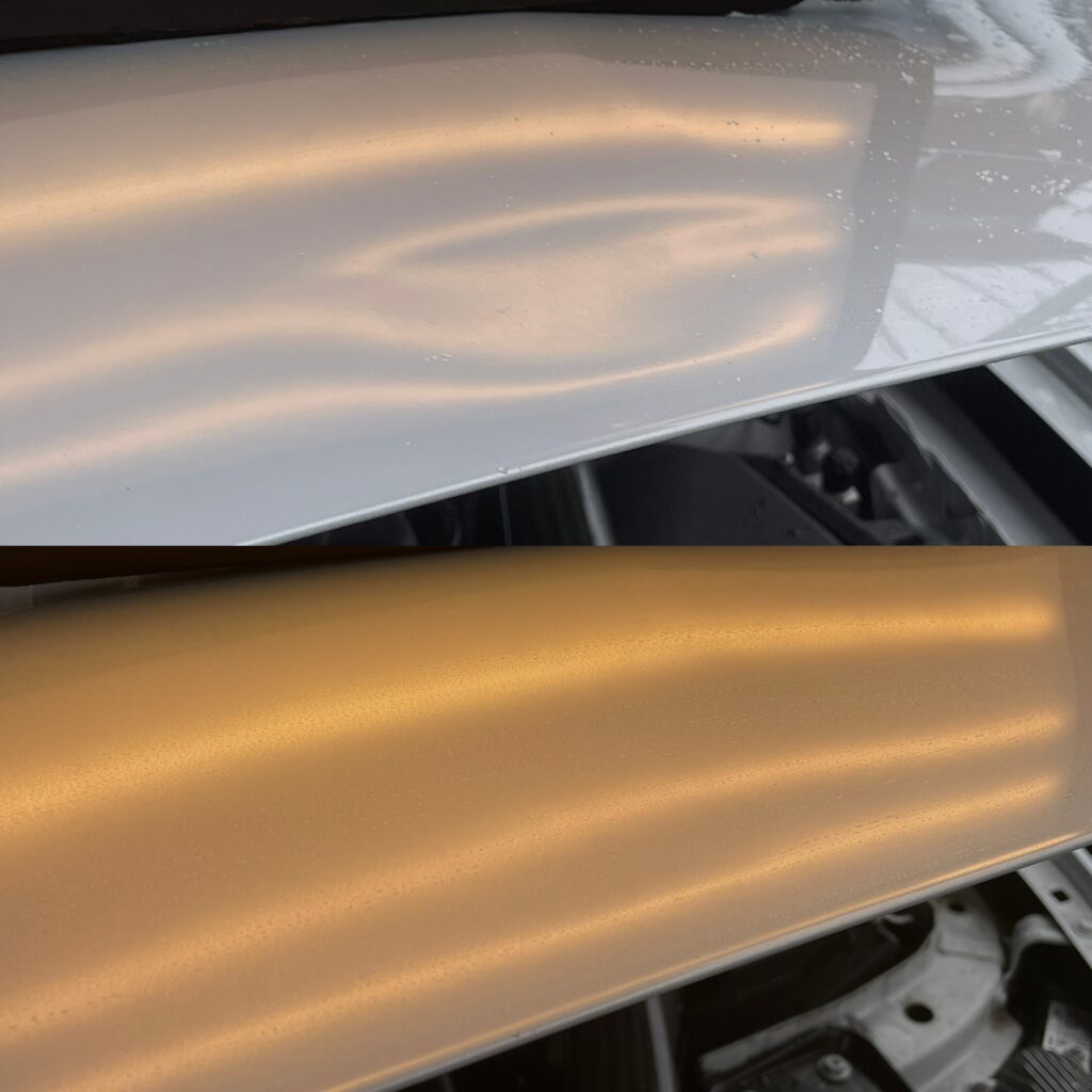 今回ボンネットの裏にちょうど工具が入れられる穴があったためこれだけの凹みでもなんとか仕上げきれました。