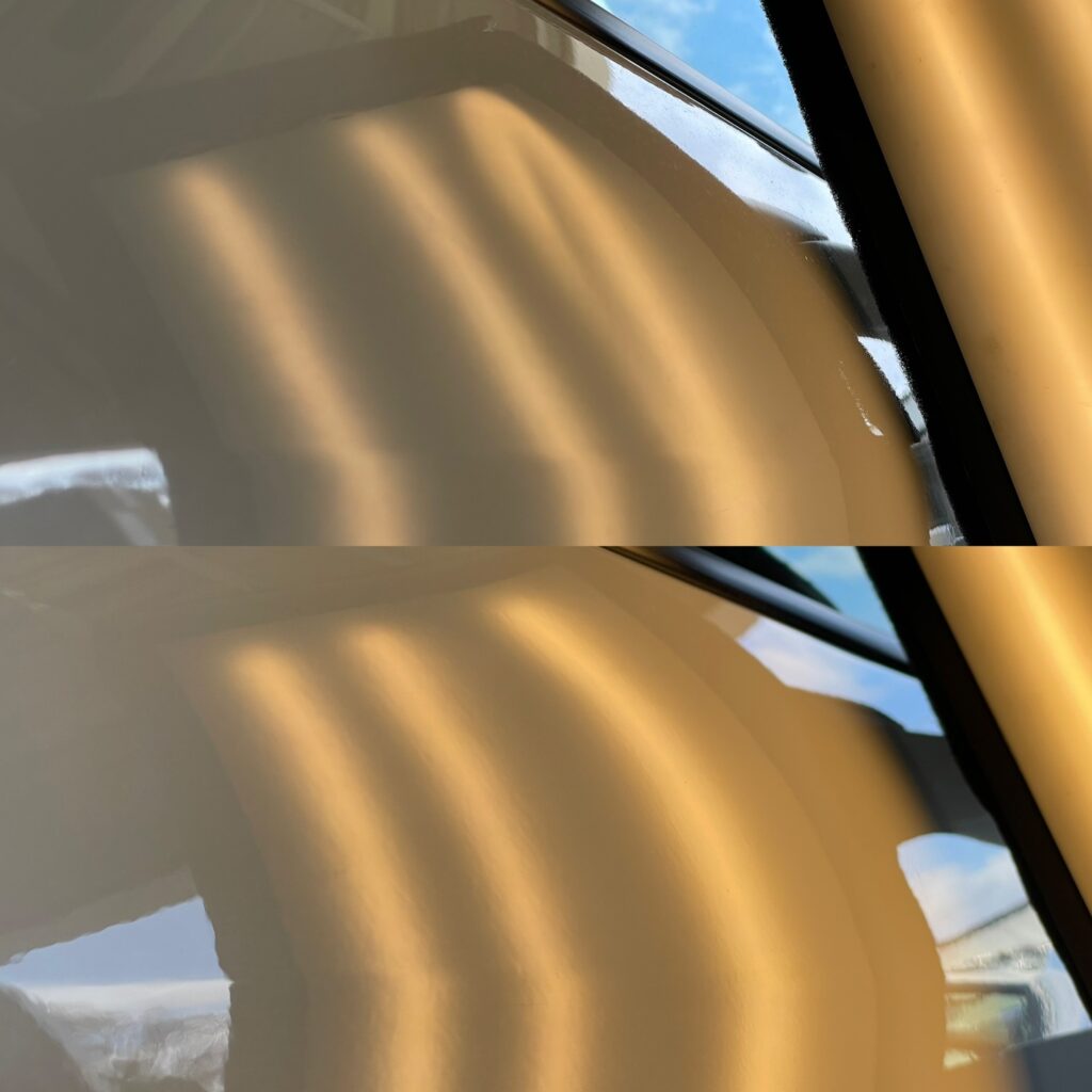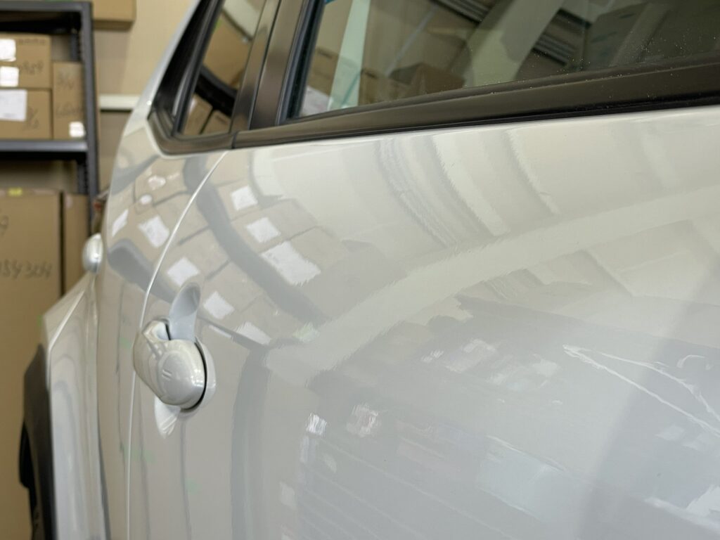 曲面の部分ということもあり、腫れ上がっている部分と凹んだ部分をきちんと修正してあげないと映り込みが歪んでしまうので何度も入念に確認してバッチリキレイに仕上げております✨